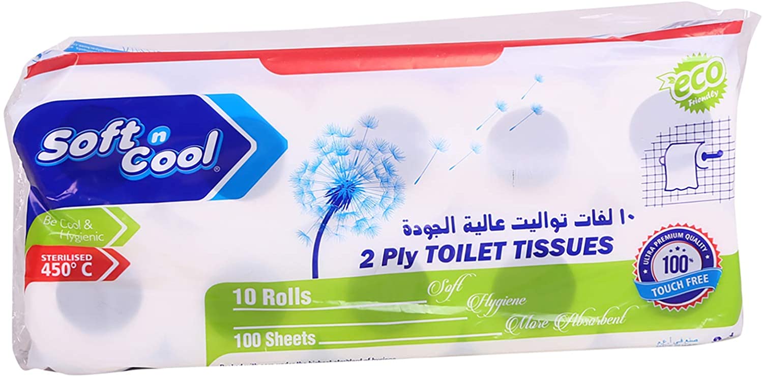 Soft n cool-toilet roll 100 sheets pack of 10 Rolls (10 packs per carton)Type: Toilet PaperSmooth, and soft, Ultra Plush toilet papercomfort for the clean feel you expect and the luxurious feel you desire..